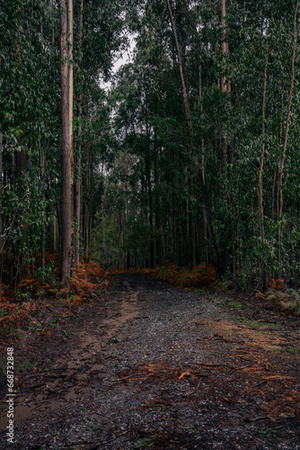 Obraz premium Moody trail in a eucalyptus forest