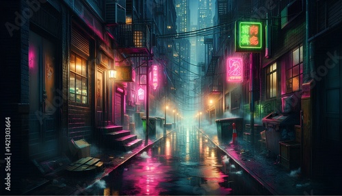 © mesin duit, Fototapeta premium Moody Urban Alley in Rain