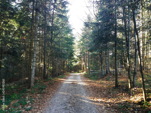 © gpetric, Fototapeta premium Moody view of autumn's fir forest road