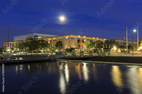 © Kit Leong, Obraz premium Moon and Los Angeles downtown building