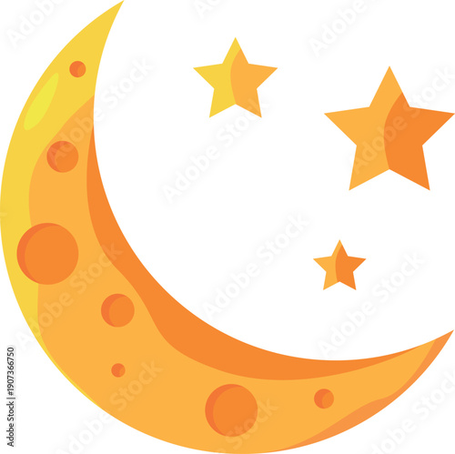 © ONYXprj, Naklejka premium Moon and stars. Crescent icon. Cartoon night symbol