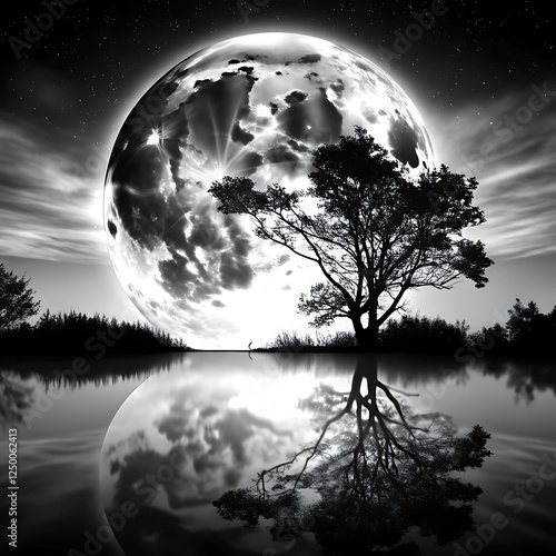 Naklejka premium moon and tree