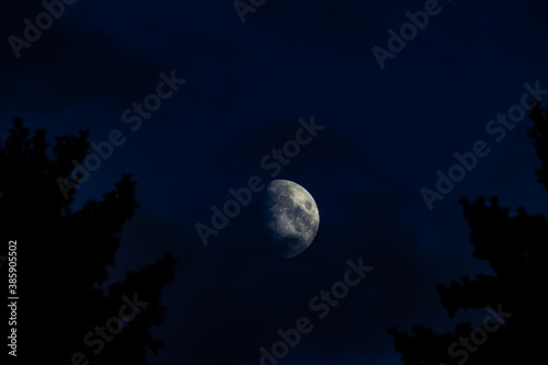 © LukasEmanuel, Fototapeta premium Moon between the Tree