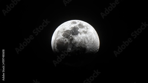 Fototapeta premium Moon close-up in a clear night sky displaying surface details and craters,...