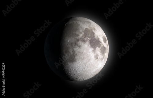 © revers_jr, Obraz premium Moon glowing on black background. Elements of this image furnished by NASA.