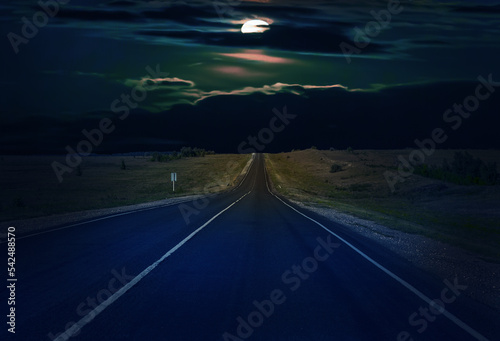 © Yuri Bizgaimer, Fototapeta premium Moon in the clouds over a country road