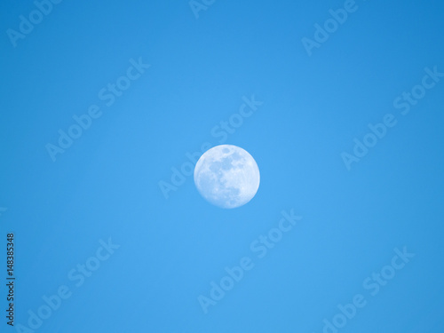 © anuskiserrano, Obraz premium Moon in the fourth quarter on a blue sky