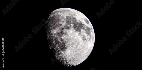 © mosaab, Obraz premium Moon in waxing gibbous phase with black background