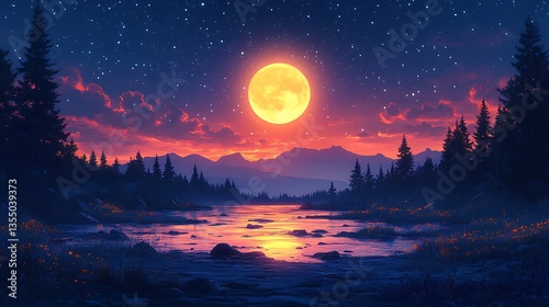 © Prosanjit12, Obraz premium Moon luxury design bedroom wallpaper glow high resolution hd image