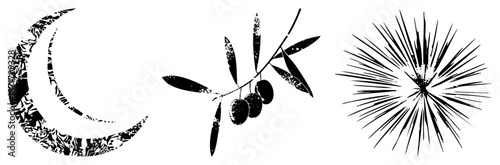 Obraz premium Moon, Olive Branch, and Starburst Vector Set