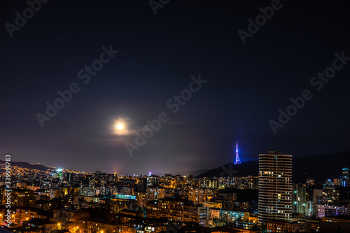 © Anna Bogush, Fototapeta premium Moon rising and stars in night sky over Tbilisi