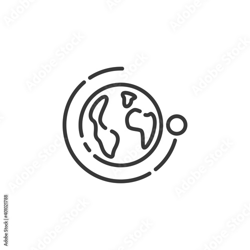 Obraz premium Moon rotation around the Earth thin line icon. Isolated weather vector illustration