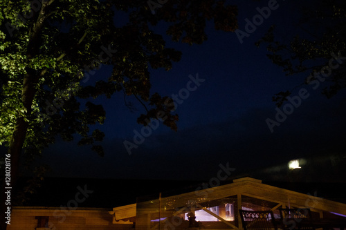 © nastasenko, Fototapeta premium Moon shines over wooden house