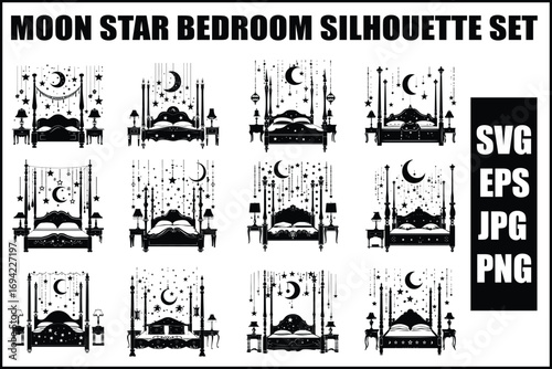 © HUMAYUN KABIR, Fototapeta premium Moon Star Bedroom Silhouette Set