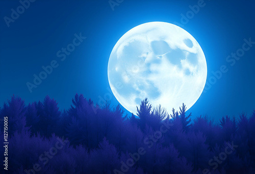 Fototapeta premium moon with light sky blue glow the moon and violet colour trees on earth...