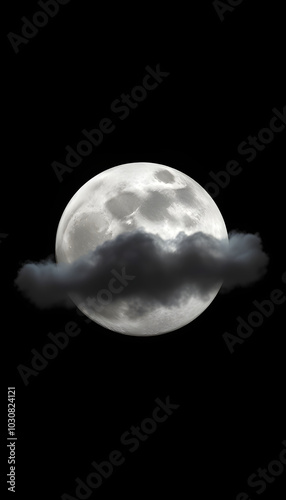 © Sergey, Fototapeta premium moon with textured cloud,Abstract black,isolated on black background isolated with white highlights, png