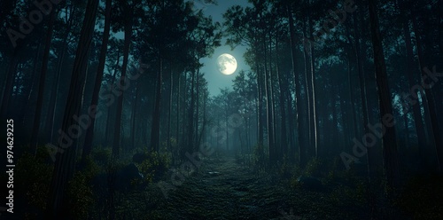 © AgungRikhi, Naklejka premium Moonlight Forest Path