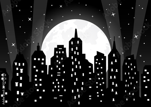Fototapeta premium Moonlight over night city vector illustration