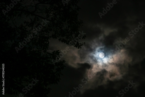 Naklejka premium Moonlight Through Clouds at Night Sky