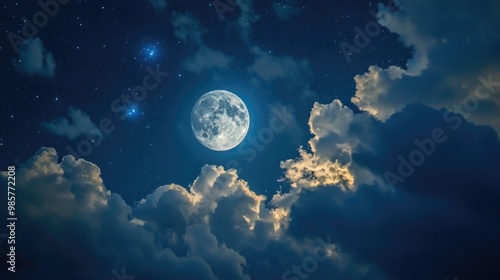 © AkuAku, Obraz premium Moonlit clouds and starry night