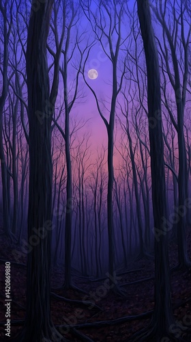 © projek, Obraz premium Moonlit, dusky forest at twilight