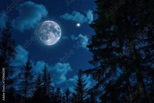 © Hitam Putih, Naklejka premium Moonlit night sky