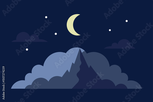 © Robi, Naklejka premium Moonlit night sky over a tranquil sea with stars and clouds