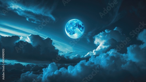 Fototapeta premium Moonlit night with clouds. Blue hue.