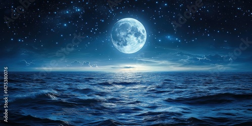 Fototapeta premium Moonlit ocean waves at night serene seascape digital tranquil environment...