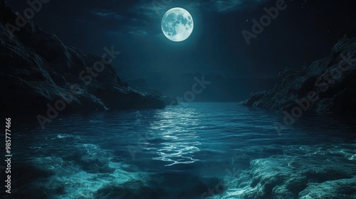 © AkuAku, Fototapeta premium Moonlit Ocean with Enchanting Underwater View