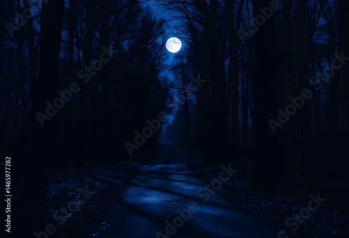 © Hamida, Obraz premium Moonlit Path Through a Dark Forest