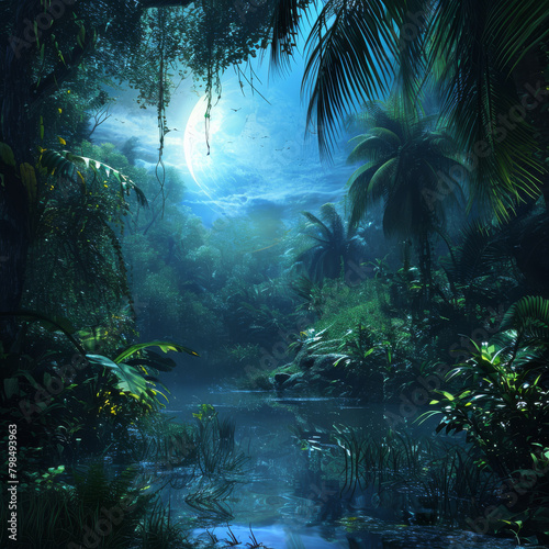 © Keyser the Red Beard, Obraz premium Moonlit Tropical Jungle Scene