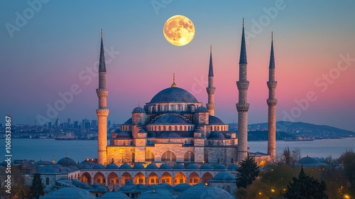 Naklejka premium Moonrise Over Istanbul Mosque
