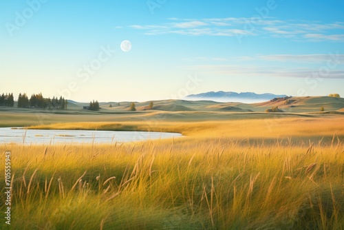 Fototapeta premium moonrise over tranquil, undisturbed grassland terrain