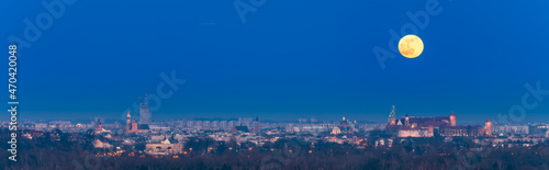 Naklejka premium Moonrise over Wawel castle in Krakow, Poland