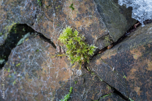 Obraz premium Moos an einer Steinmauer mit Eiskristallen