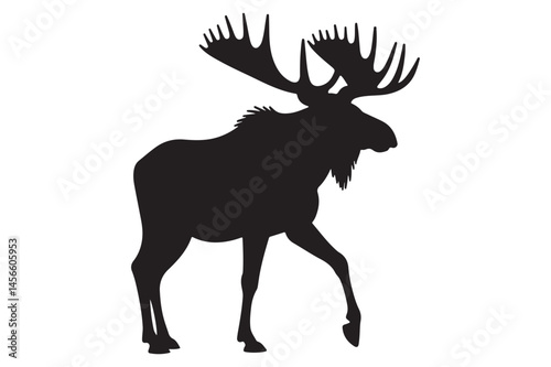 © Sabbir, Obraz premium Moose Antlers Silhouette | Minimal Vector Illustration for Hunting and Camping Logos