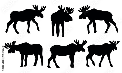 Fototapeta premium Moose Black Silhouette Vector Set in Different Poses