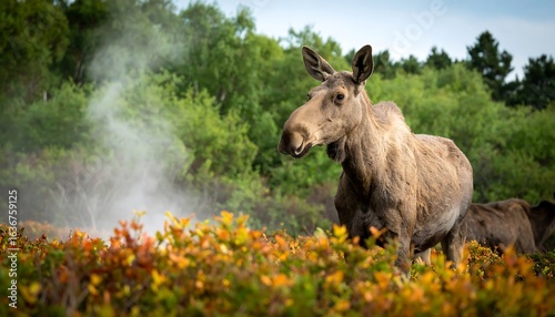 © Rejeki, Fototapeta premium Moose in autumnal forest with steam