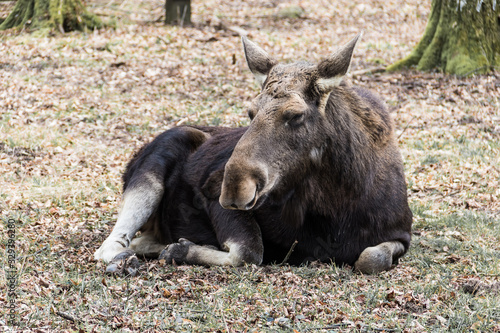 © irena iris szewczyk, Fototapeta premium Moose lying on the grass. Closeup.