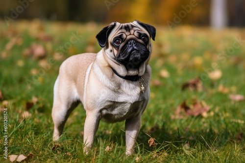 Obraz premium mops posing in the park, pet photography