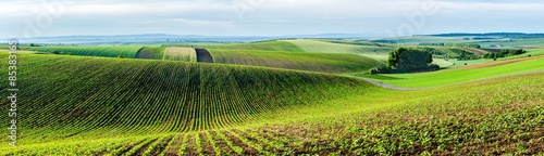 © Dmitry Rukhlenko, Fototapeta premium Moravian rolling landscape with trees