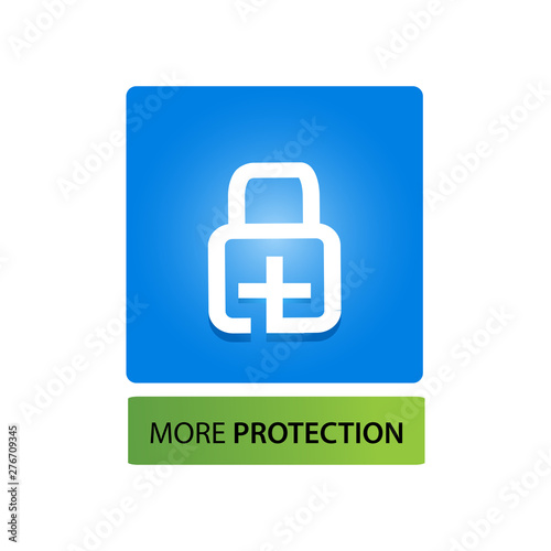 © asalaa, Obraz premium More protection stock button. Vector illustration on white background.. vector.