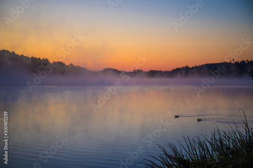 © Michael, Fototapeta premium Morgennebel Sonnenaufgang am Untreusee