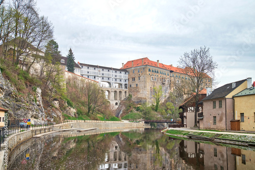 Fototapeta premium Morning at Cesky Krumlov Castle ,The Cloak Bridge and Upper Castle view from...
