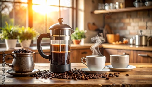 Fototapeta premium Morning Coffee at Home: Rustic Kitchen Scene