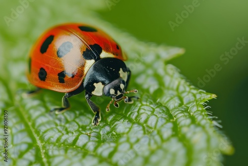 © Johan, Fototapeta premium Morning Dew: A Ladybug’s Gentle Perch Generative AI