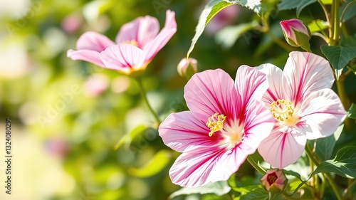© Sandra, Fototapeta premium Morning Dew on Ipomoea Flowers, Natural Beauty, Blank Space for Design