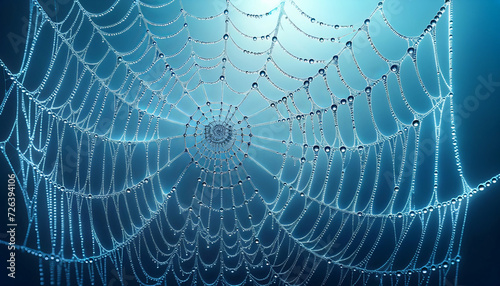 Fototapeta premium Morning Dew on Spiderweb Against Tranquil Blue