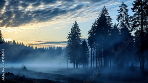 Fototapeta premium Morning fog at dawn through trees